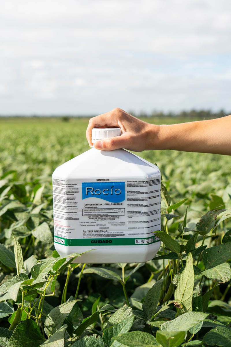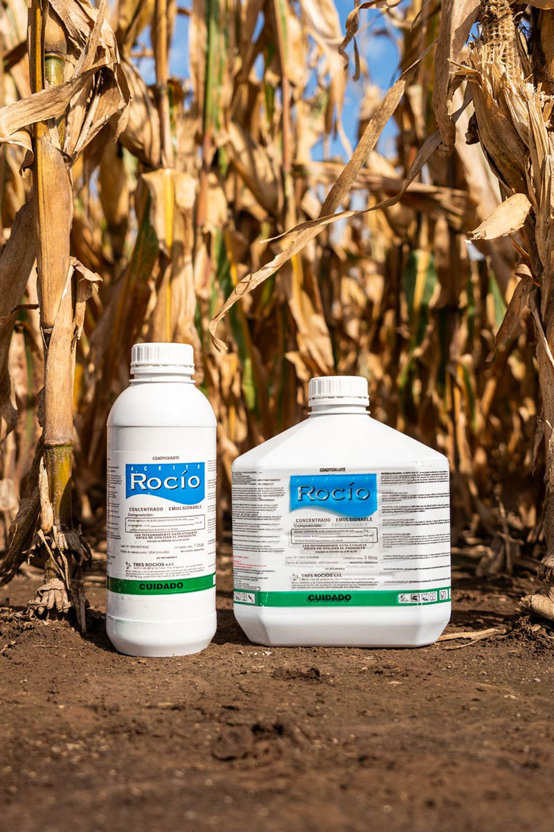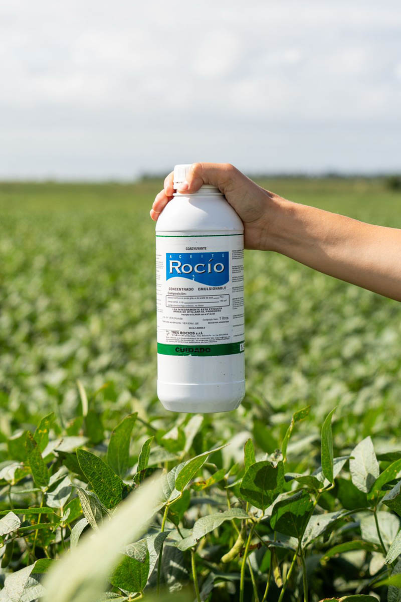 Aceite compuesto formulado con 75% de ésteres metílicos de ácidos grasos de aceite de soja más 25% de una mezcla de tensioactivos aniónicos y no iónicos al 100% de materia activa en la formulación.