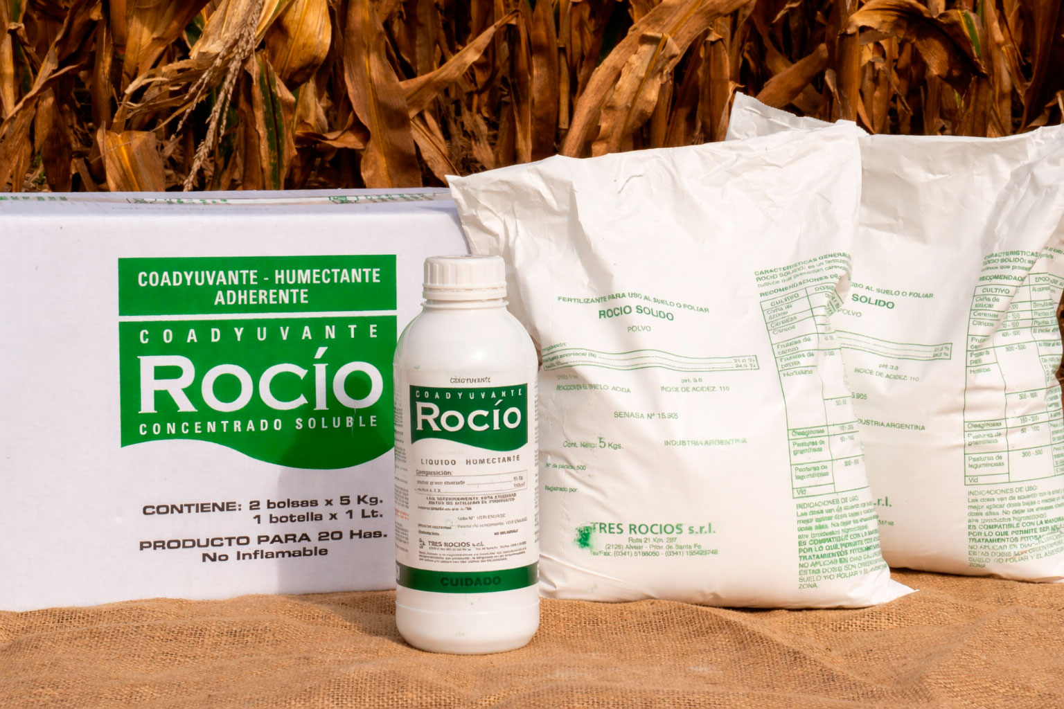 Pack para 20 hectáreas: contiene 2 bolsas de 5kg c/u de sulfato de amonio y 1 botella de Lt de coadyuvante.